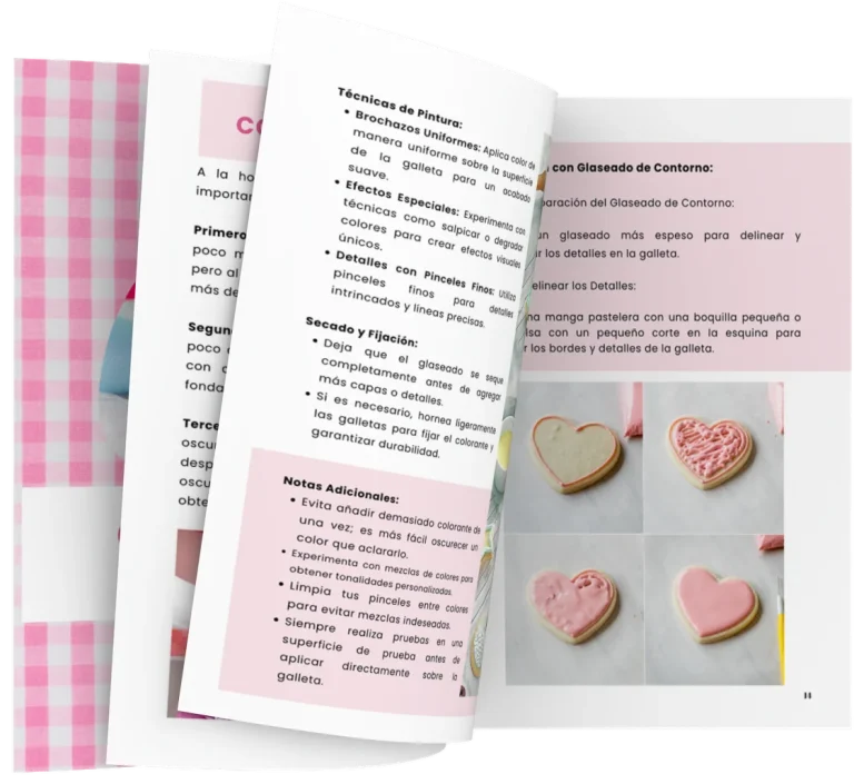 Nuestro ebook te brinda un valor enorme al darte acceso a recetas exclusivas, plantillas y un paso a paso detallado para que cualquier persona pueda tener creaciones hermosas con sus galletas decoradas sin perder tiempo ni esfuerzo en intentos que no funcionan.